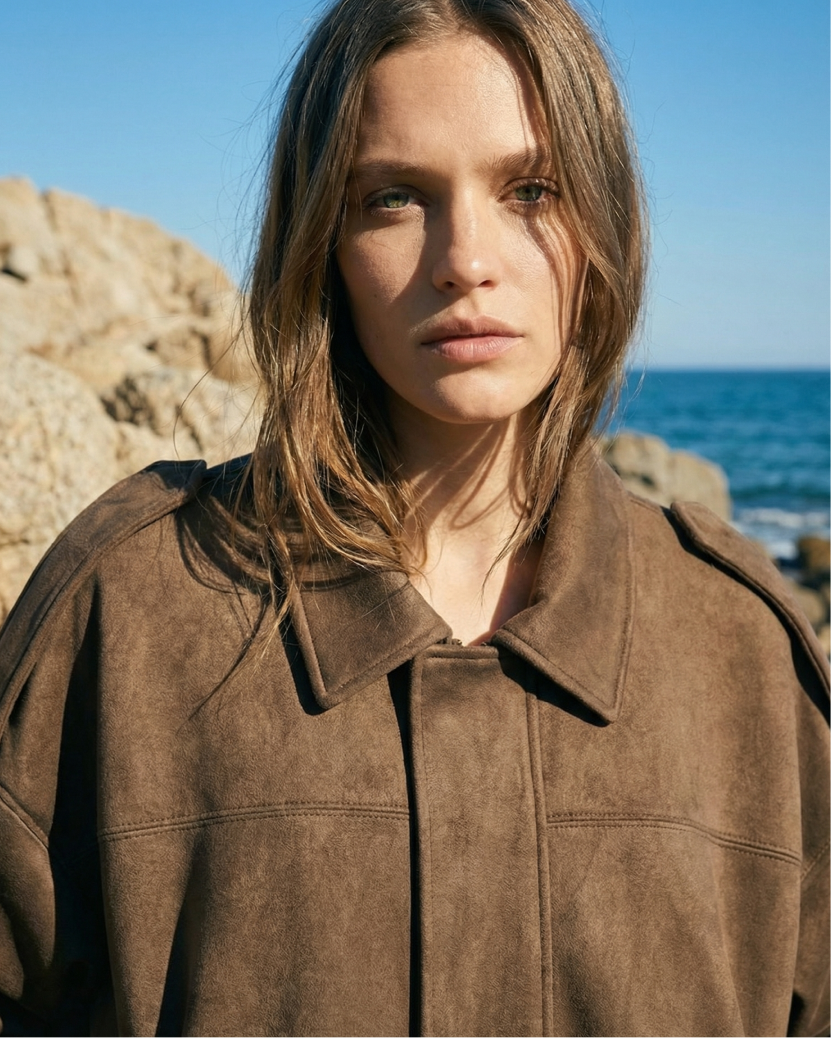 Ladies’ Bomber Jacket Long Sleeve Zip Suede – Rowan