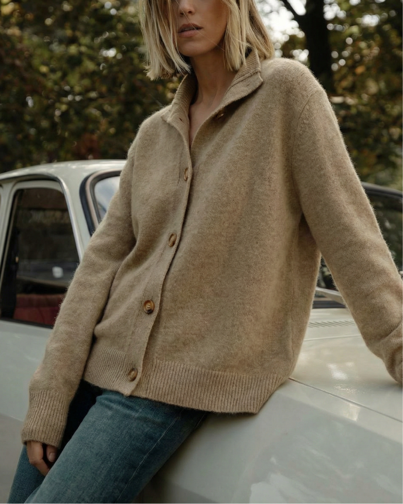 Ladies' Button-Front Cardigan with Soft Collar – Florence