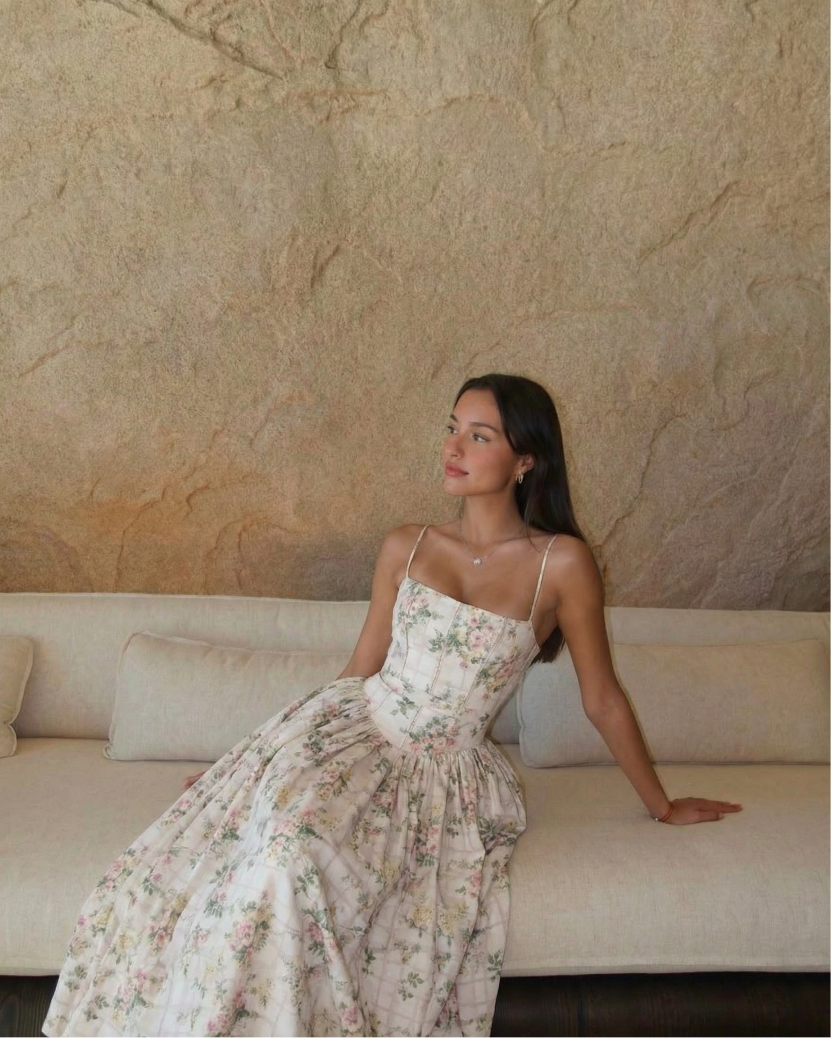 Maxi Dress with Square Neck Floral Jacquard – Felicity