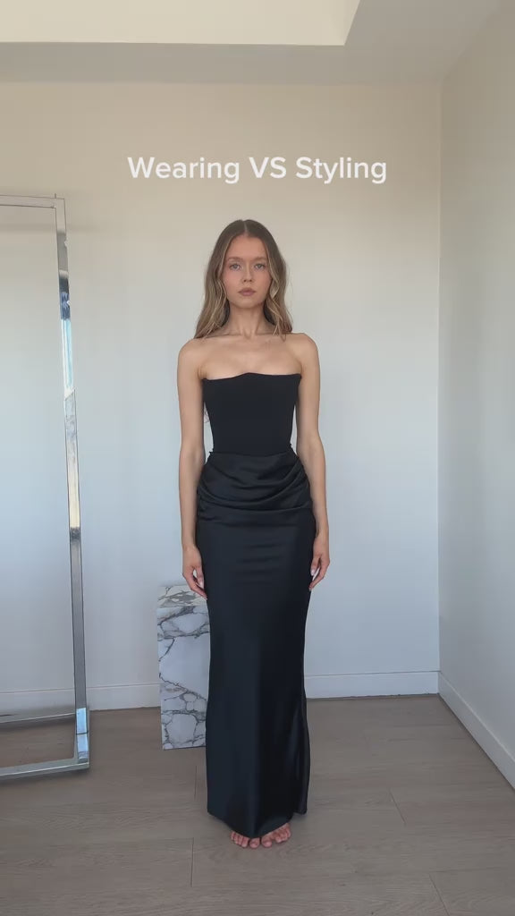The Freya dress combines the timeless appeal of a corset with the modern comfort required for a long evening out. Designed to sculpt and smooth, the bodice features supportive internal boning that creates a defined silhouette without feeling restrictive or stiff. The gathered mesh overlay adds a soft, romantic texture, offering a sophisticated balance of structure and drape. It runs true to size with a secure fit, ensuring the strapless neckline stays put so you can relax and enjoy the night without constant adjusting.